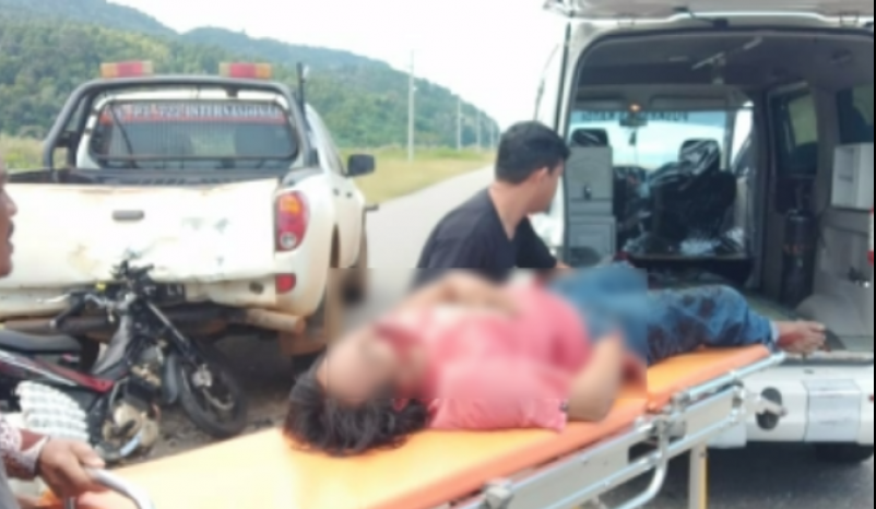 “Sepeda motor Suzuki Satria FU warna hitam Nomor Polisi DT 4567 CJ yang dikendarai oleh seorang lelaki bernama Alamsyah (39) menabrak belakang mobil Mitsubishi strada Double Cabin warna putih Nopol DK 8471 LV yang saat itu berada di badan jalan dalam kondisi rusak (mogok),” kata dia.