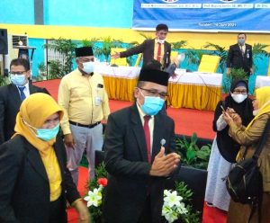 Tidak hanya itu para pendukung yang memadati area Gedung Sport Center UHO, berlomba memberi ucapan selamat kepada Prof. Muh Zamrun atas terpilihnya sebagai Rektor UHO 2021.