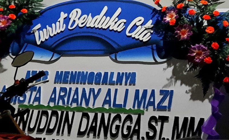 Kiriman bunga dengan ucapan belasungkawa bagi Agista Ariany yang juga Ketua KONI Sultra itu menghiasi halaman Rujab, sehingga membuat kendaraan yang masuk dalam rujab itu harus berhati-hati baik yang masuk maupun ke luar karena jalan di belakang Rujab kini sedang dalam proses pelebaran.