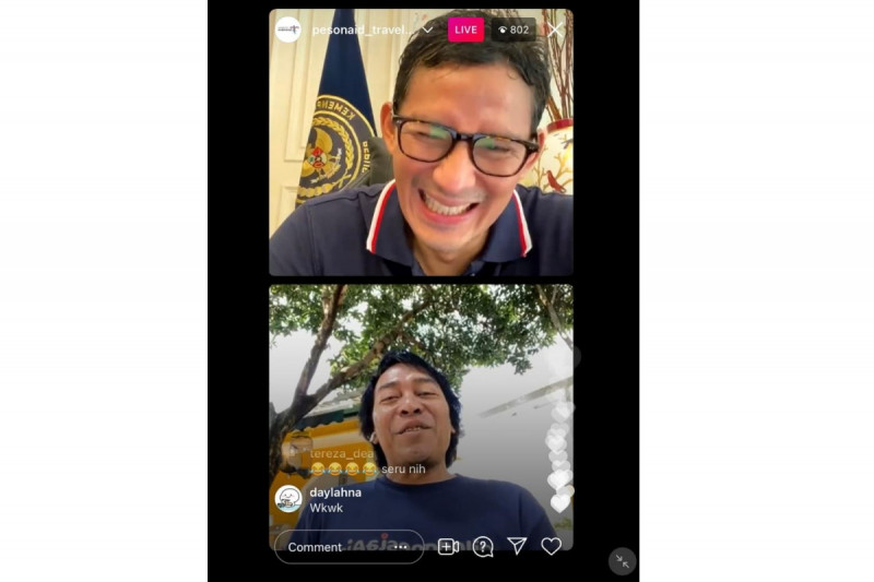 Saat berbincang dengan komedian Komeng dalam acara NGANTRI (Ngobrol dengan Mas Menteri), Minggu (1/8), Sandiaga mengatakan di tengah pandemi dan keterbatasan ekonomi ini, profesi yang menjanjikan adalah komedian dan konten kreator. Mereka semakin diterima di kalangan masyarakat karena umumnya memiliki kreativitas tinggi sehingga bisa menghibur dan meningkatkan imunitas masyarakat di tengah pandemi.