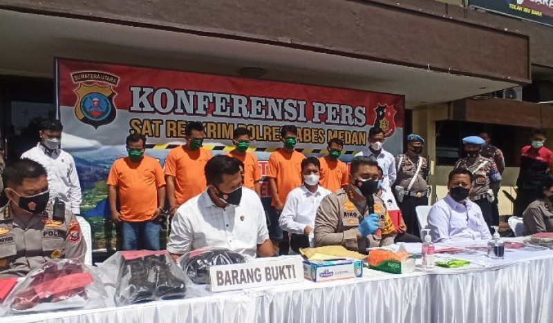 “Identitas tersangka SS, HST, A, N, dan IIB,” kata Kapolrestabes Medan Kombes Pol. Riko Sunarko saat ekspose kasus di Mapolrestabes Medan, Senin.