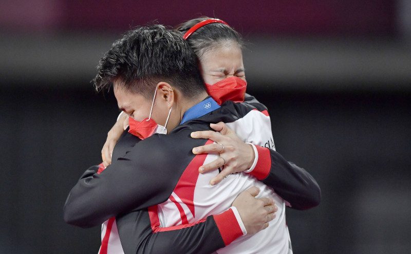 Gresyia/Apriyani menang dua gim langsung 21-19, 21-15 atas pasangan China Chen Qingchen/Jia Yifan dalam perebutan emas bulu tangkis ganda putri Olimpiade Tokyo 2020 di Musashino Forest Sport Plaza.