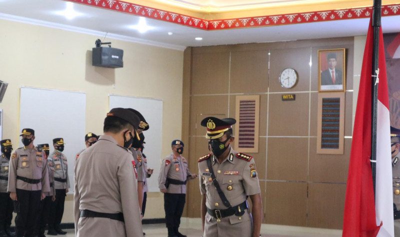 Serah terima jabatan yang berlangsung dalam tatanan protokol kesehatan karena pandemi virus Corona dipimpin Kapolda Sultra Irjen Pol Drs Yan Sultra Indrajaya, SH, Selasa.