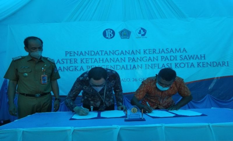Kegiatan penandatanganan kerjasama klaster ketahanan pangan padi sawah di kawasan Amohalo, Kelutahan Baruga, Kecamatan Baruga dalam rangka pengendalian inflasi Kendari turut dihadiri Kepala Dinas Pertanian Kendari, Kepala Dinas Perikanan dan Kelautan Kendari, Kepala Dinas Periwisata Kendari, Bappeda Kendari dan tamu undangan lainnya.
