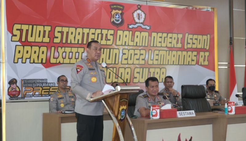 DINAMIKASULTRA.COM, KENDARI – Peserta Pendidikan Reguler Angkatan (PPRA) LXII Tahun 2022 Lembaga Ketahanan Nasional (Lemhannas) RI melakukan Studi Strategis Dalam Negeri di Kepolisian Daerah (Polda) Sulawesi Tenggara.