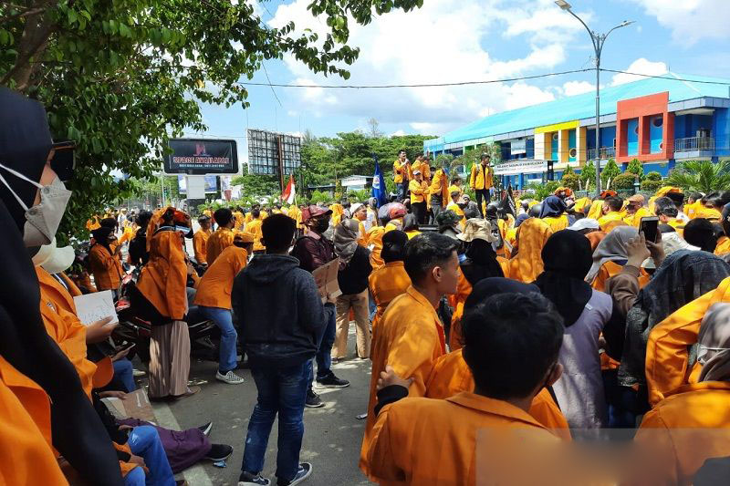 Sebelumnya pada pukul 10.30 Wita, Ketua DPRD Sulawesi Tenggara, Abdurrahman Saleh, menerima aspirasi mahasiswa dari HMI Cabang Kendari dan gabungan elemen masyarakat Kendari di gedung sekretariat dewan berlangsung damai dengan beberapa tuntutan mahasiswa seperti menolak wacana penundaan Pemilu 2024, turunkan harga BBM dan tuntaskan kelangkaan minyak goreng.