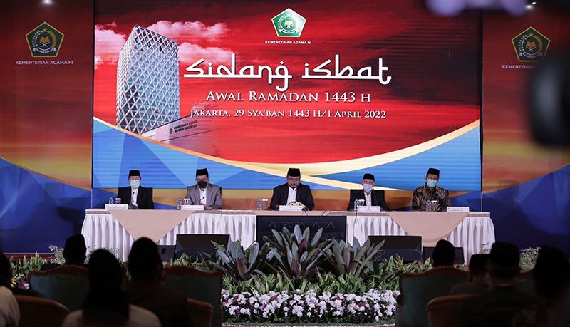 Suasana penetapan 1 Ramadhan 1443 Hijriah/2022 Masehi, di Gedung Kementerian Agama, Jakarta, Jumat (1/4/2022). (ds/ANTARA/HO-Kemenag/aa). (Handout Kemenag)