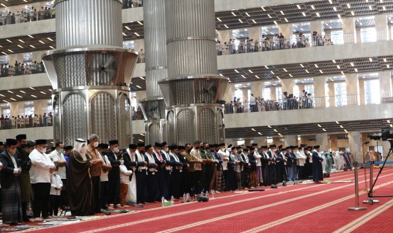 Pelaksanaan shalat Ied di masjid Istiqlal pada tahun ini merupakan yang perdana pasca pandemi COVID-19.