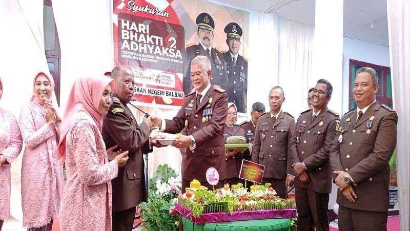 Kemudian, Kejari Baubau juga melaksanakan upacara peringatan Hari Bhakti Adhyaksa lalu dilanjutkan pemotongan tumpeng dengan dihadiri seluruh pejabat Kejari, sejumlah purnaja dan Dharma Wanita korps Adhyaksa itu.(ds/bdn)