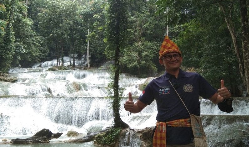 DINAMIKASULTRA.COM, KONSEL – Menteri Pariwisata dan Ekonomi Kreatif (Menparekraf) Sandiaga Salahuddin Uno terpukau dengan keindahan yang disuguhkan wisata Air Terjun Moramo, Desa Sumber Sari, Kecamatan Moramo, Kabupaten Konawe Selatan, Sulawesi Tenggara.