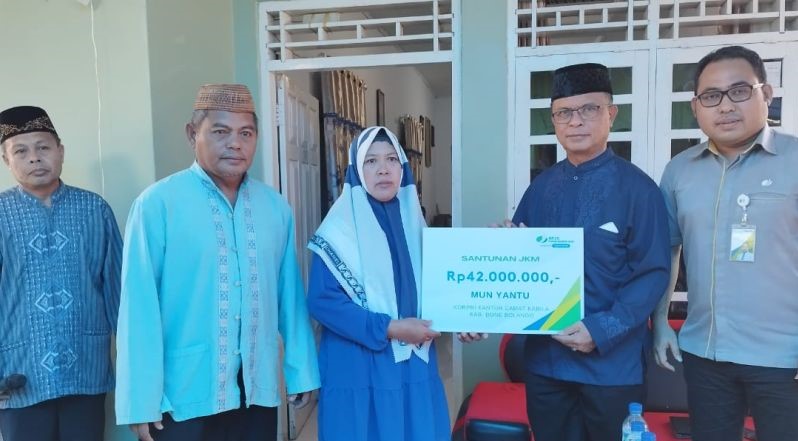 Santunan sebesar Rp42 juta itu, diserahkan langsung Sekda Bone Bolango Ishak Ntoma, selaku Ketua Dewan Pengurus Korpri Bone Bolango didampingi BPJS Ketenagakerjaan Cabang Gorontalo Lurah Tumbihe Arman Lalu, kepada Pahita, selaku istri atau ahli waris dari almarhum Mun Yantu, anggota Korpri Bone Bolango yang meninggal dunia.