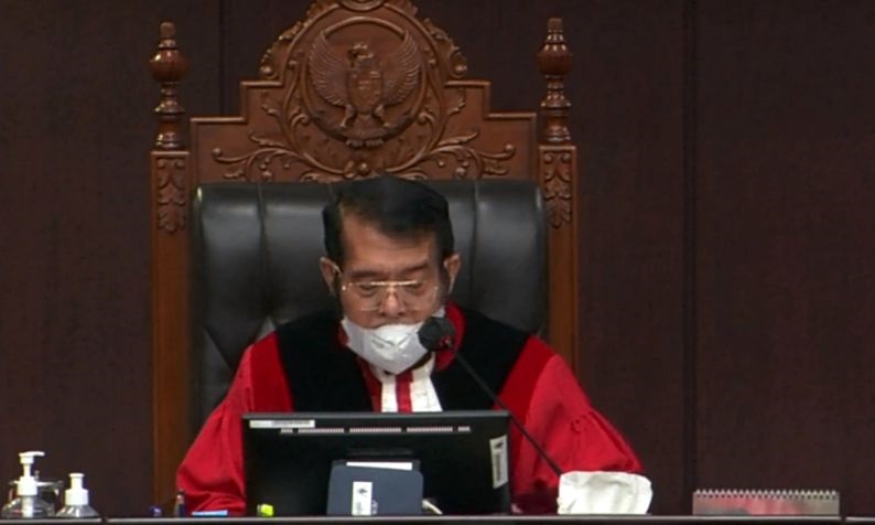 Tangkapan layar Ketua Mahkamah Konstitusi Anwar Usman saat membacakan amar putusan Perkara Nomor 73/PUU-XX/2022 di Jakarta, Kamis (29/9/2022). (ds/ANTARA/Tri Meilani Ameliya.)