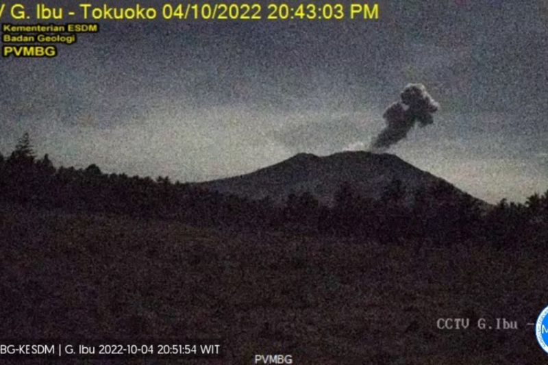 Pada 4 Oktober 2022, pukul 20.44 WIT, Gunung Ibu tercatat mengalami erupsi dengan tinggi kolom abu sekitar 1.100 meter di atas puncak atau lebih kurang 2.425 meter di atas permukaan laut.