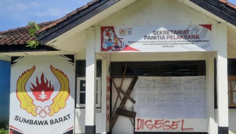 Penyegelan Kantor KONI yang berada di Taliwang, Kabupaten Sumbawa Barat, dilakukan pengurus cabor pada Pertengahan Oktober 2022.
