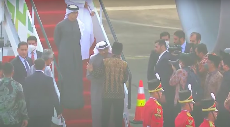 Mohammed Bin Zayed menginjakkan kakinya di Jawa Tengah setelah turun dari pesawat kepresidenan UAE dan disambut langsung oleh Presiden Jokowi di bawah tangga pesawat, sebagaimana dipantau dari siaran YouTube Sekretariat Presiden.