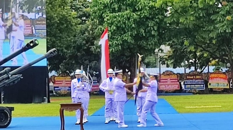 Serah terima jabatan itu ditandai penyerahan bendera panji “Jalesveva Jayamahe” dari Margono kepada Ali.