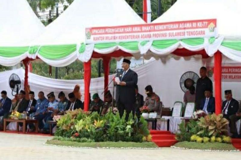 Gubernur Sultra Ali Mazi menjadi Inspektur Upacara pada peringatan Hari Amal Bhakti (HAB) ke-77 Kementerian Agama (Kemenag) Republik Indonesia di Kantor Wilayah Kementerian Agama Sulawesi Tenggara.