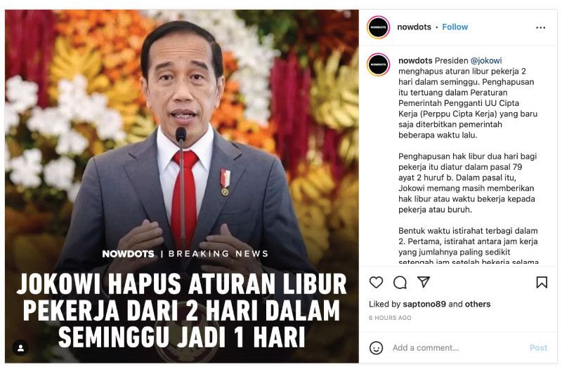 “Saya menilai Perppu Cipta Kerja itu sebagai jalan keluar sebelum selesainya semua (masalah) Undang-Undang Cipta Kerja,” ujarnya pula.