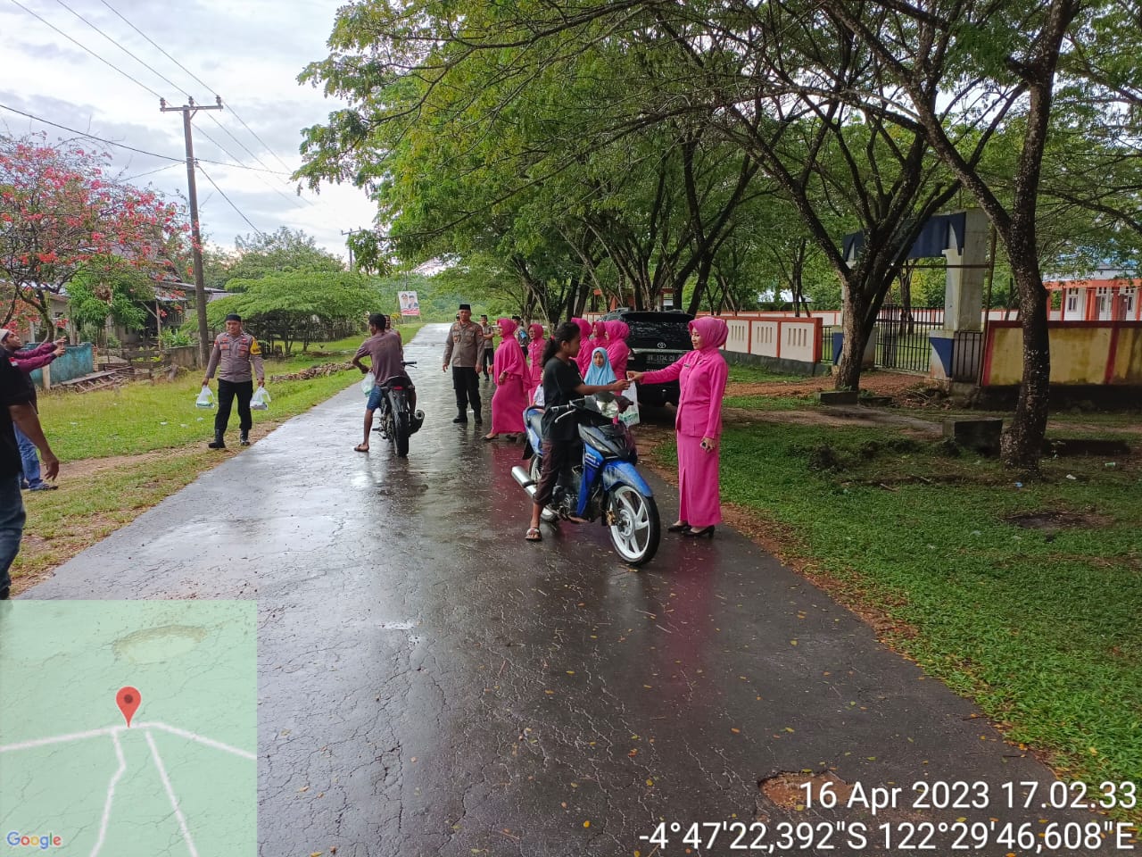 DINAMIKA SULTRA.COM, MUNA BARAT – Kepala Kepolisian Sektor (Kapolsek) Sawerigadi beserta Ibu Bhayangkari, dan jajaran membagikan takjil menjelang berbuka puasa di bulan suci Ramadhan, sebagai bentuk untuk memupuk tali kasih persaudaraan yang rukun antara umat beragama, kegiatan ini dilakukan kepada warga yang melintas di depan Polsek Sawerigadi, Minggu (16/04/2023).