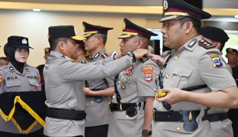 Selain empat jabatan Kapolres, dilantik juga Komandan Satuan Brimob Kombes Pol Muhajir, Direktur Lalu Lintas Kombes Pol Robertho Pardede, Karolog Kombes Pol Mukhamad Safei dan Wadir Polairud AKBP Gatot Istanto.(ds/antara)