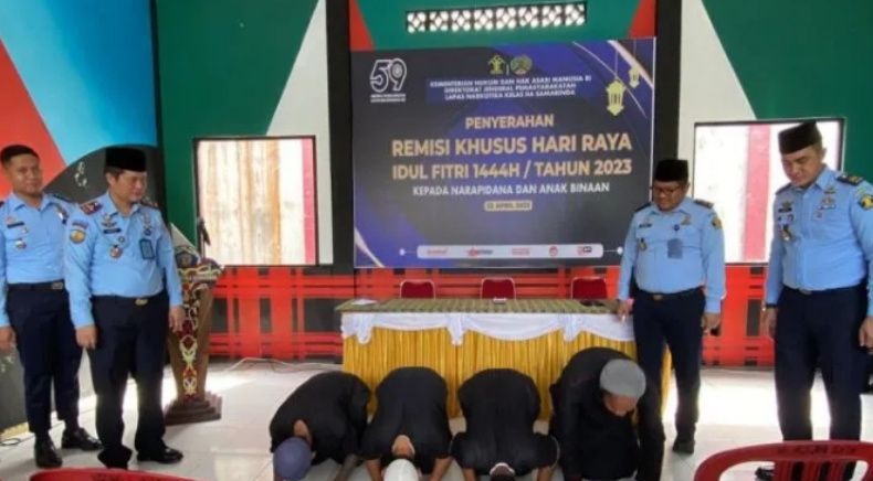 DINAMIKA SULTRA.COM, SAMARINDA – Lembaga Pemasyarakatan (Lapas) Narkotika Kelas II A Samarinda memberikan remisi khusus Hari Raya Idul Fitri 1444 Hijriah kepada 1.023 narapidana atau Warga Binaan Pemasyarakatan (WBP) yang telah memenuhi syarat.