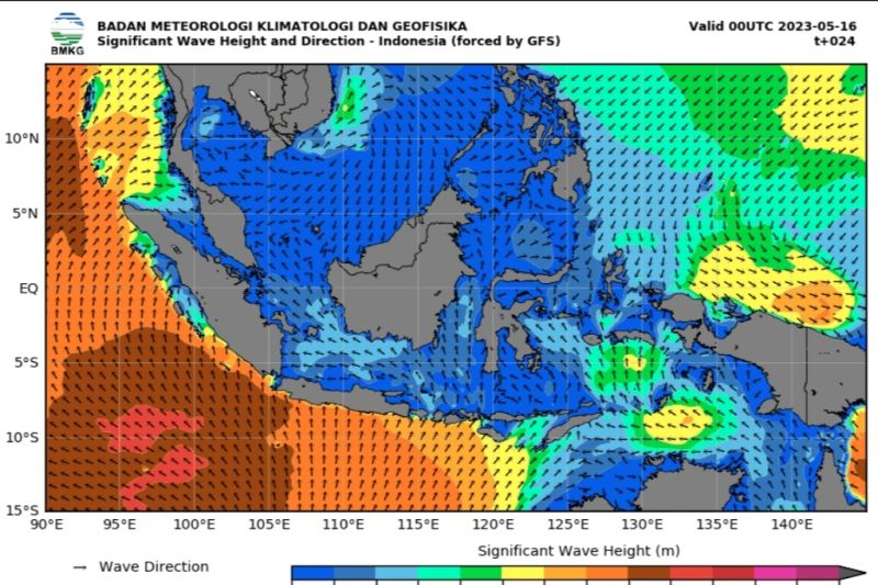 DINAMIKA SULTRA.COM, JAKARTA – Badan Meteorologi Klimatologi, dan Geofisika (BMKG) menyampaikan gelombang tinggi hingga empat meter berpotensi terjadi di beberapa wilayah perairan Indonesia pada 16-17 Mei 2023.