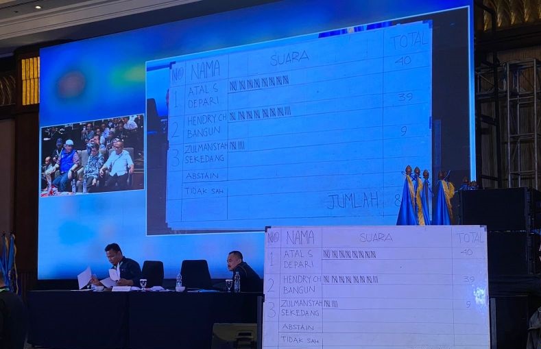 “Dari hasil pemilihan penghitungan suara dari tiga calon ada dua calon yang mendapatkan suara terbesar yaitu Atal Sembiring Depari dan Hendry Ch Bangun, sesuai dengan yang telah disepakati, nanti akan dilanjutkan pemilihan putaran kedua,” kata salah satu pimpinan sidang pemilihan, Luthfil Hakim.