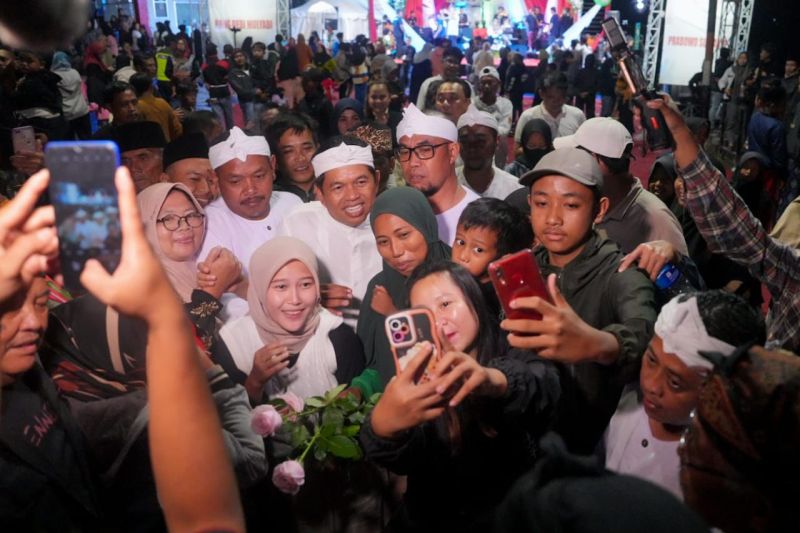 Wakil Ketua Dewan Pembina Partai Gerindra Dedi Mulyadi (tengah) saat berfoto dengan warga. (ds/ANTARA/HO-Dok Dedi Mulyadi)