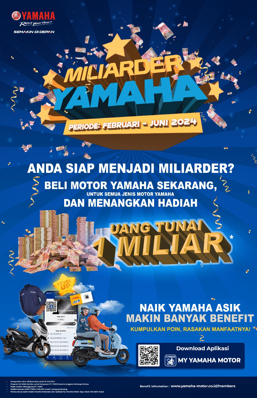 Untuk informasi lebih lanjut mengenai program Miliarder Yamaha 2024 dan juga aplikasi My Yamaha Motor.