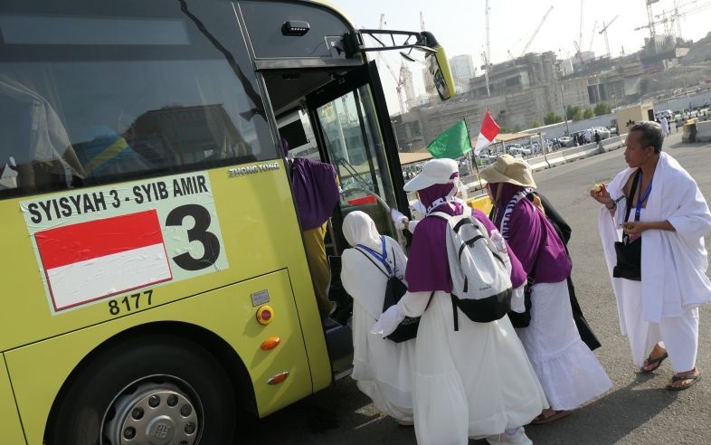 Jamaah calon haji Indonesia menaiki bus Shalawat seusai beribadah di Terminal Syib Amir, Makkah, Arab Saudi, Kamis (23/5/2024). Pemerintah Indonesia menyatakan pada musim haji 1445/ 2024 M menyiapkan total 450 bus Shalawat di Makkah yang melayani jamaah dari titik akomodasi atau pemondokkan menuju terminal Syib Amir dan Jiad di kawasan Masjidil Haram, dengan 76 halte, dan 22 rute. ANTARA FOTO/Sigid Kurniawan. (ds/ANTARA FOTO/SIGID KURNIAWAN)