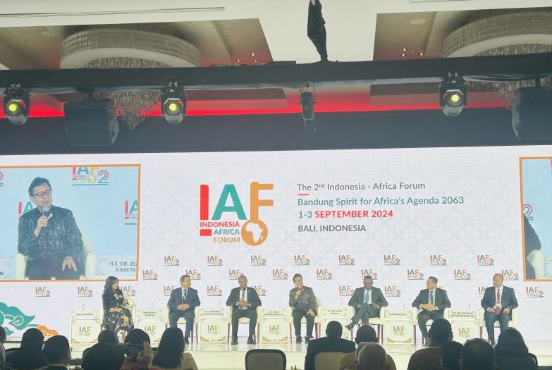 Menteri Kesehatan Republik Indonesia Budi Gunadi Sadikin (tengah) menjadi pembicara pada sesi Indonesia-Africa Forum ke-2 di Nusa Dua, Badung, Bali, Selasa (3/9/2024). (ds/ANTARA/Kuntum Riswan.)