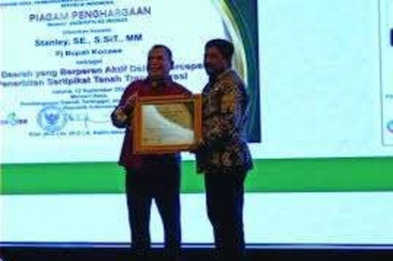 Dia menyebutkan penghargaan tersebut diterimanya dalam kegiatan Rapat Koordinasi Percepatan Penerbitan Sertifikat Tanah Transmigrasi 2024, yang digelar oleh Direktorat Jendral Pembangunan dan Pengembangan Kawasan Transmigrasi (PPKT) Kemendes-PDTT.