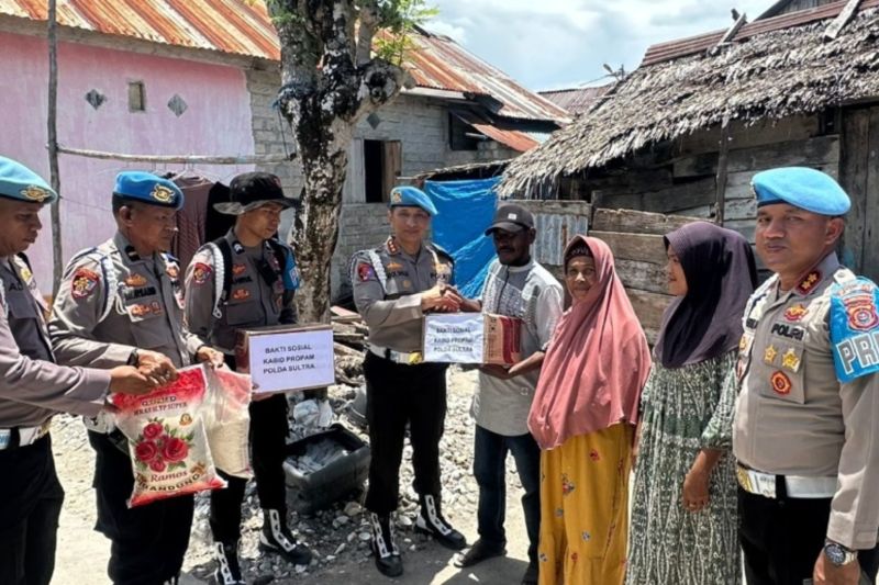 Propam Polda Sultra Bagi Sembako ke Warga Tidak Mampu di Konawe