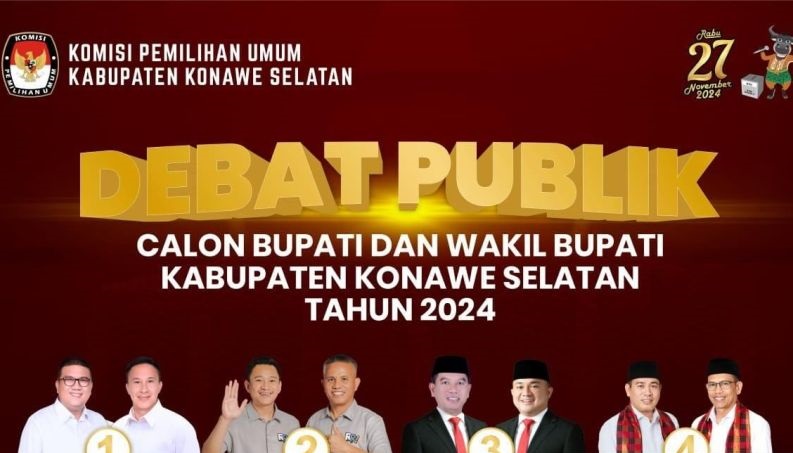 Empat paslon bupati dan wakil bupati Konsel yakni Adi Jaya Pratama-Jams Adam Mokke nomor urut 1, pasangan Muh.Radhan Algindo Nur Alam-Rasyid nomor urut 2, pasangan Irham Kalenggo- Wahyu Imran nomor urut 3 dan pasangan Herman Pambahako-Herianto nomor urut 4.