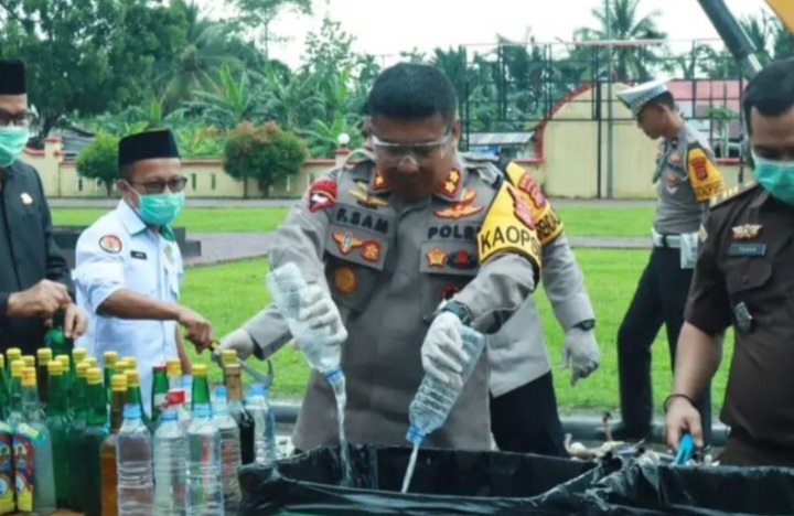 Dia menyebutkan bahwa selain memusnahkan minuman keras, pihaknya juga menghancurkan sebanyak 715 knalpot kendaraan yang tidak sesuai dengan spesifikasi atau brong hasil penindakan tim Satuan Lalu Lintas (Sat Lantas) Polres Konawe Selatan.
