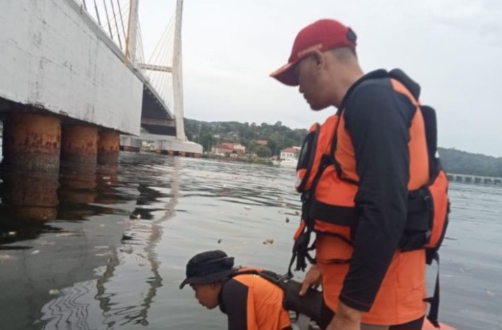 DINAMIKA SULTRA.COM, KENDARI – Tim Penyelamat Basarnas Kendari menurunkan tim untuk mencari seorang perempuan yang mencoba bunuh diri dengan melompat ke laut di tembatan Teluk Kendari, Provinsi Sulawesi Tenggara (Sultra).