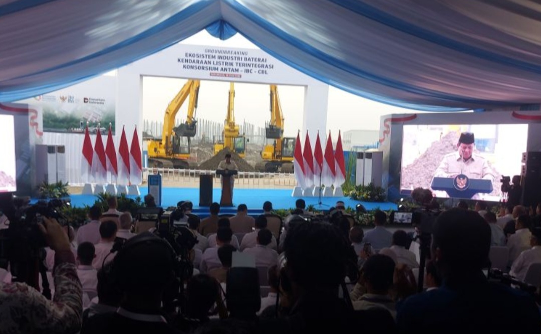 DINAMIKA SULTRA.COM, KARAWANG – Presiden Prabowo Subianto meletakkan batu pertama (groundbreaking) pembangunan proyek Ekosistem Industri Baterai Kendaraan Listrik Terintegrasi Konsorsium ANTAM-IBC-CBL di Kawasan Artha Industrial Hills (AIH), di Karawang, Jawa Barat, Minggu.