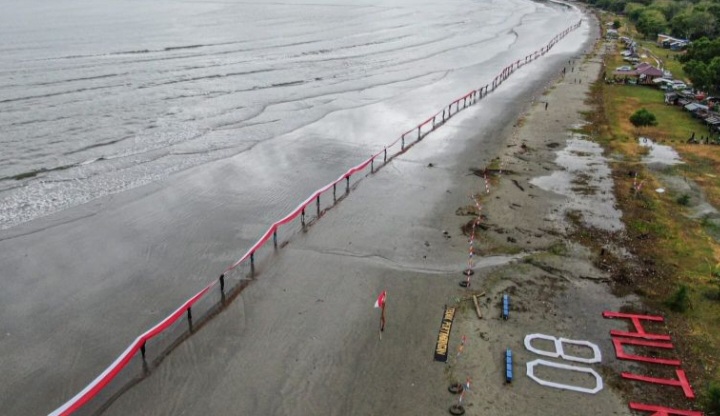 Warga Konawe-UMK Kendari Bentangkan Bendera Merah Putih 580 Meter Rayakan HUT RI