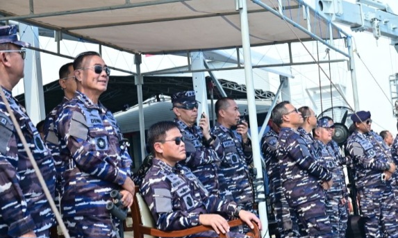 Pangkoarmada RI Laksdya Denih Hendrata saat dikonfirmasi di Jakarta, Minggu, mengatakan jajaran pejabat TNI AL meninjau gladi di atas KRI Radjiman Wedyodiningrat-992.
