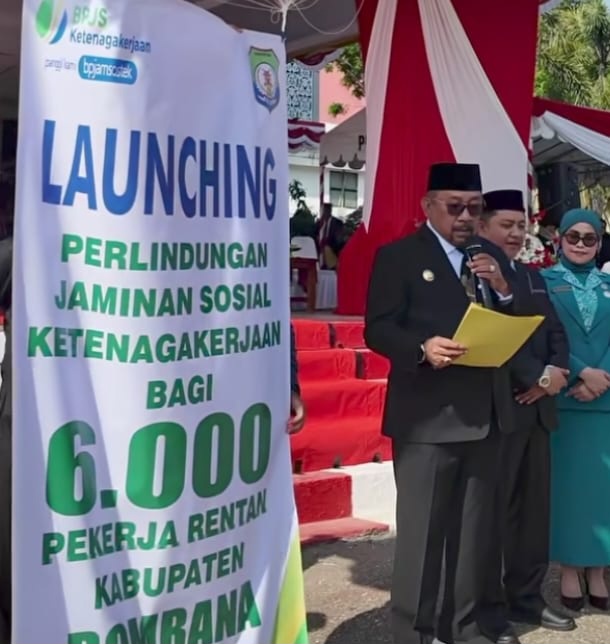 “Dengan mengucapkan Bismillahirrahmanirrahim, hari ini, 1 Oktober 2025, atas nama Pemerintah Kabupaten Bombana, saya meluncurkan kegiatan perlindungan jaminan sosial ketenagakerjaan bagi 6.000 pekerja rentan di Kabupaten Bombana,” ujar Burhanuddin.