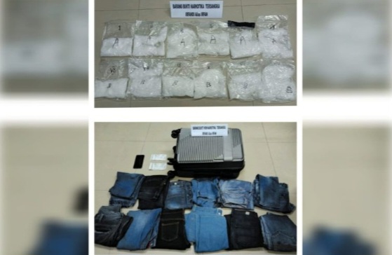 Saat itu, petugas menemukan barang bukti narkotika di dalam koper berwarna abu-abu milik pelaku sebanyak 12 kantong plastik putih bening berisi sabu dengan berat bruto mencapai 2 kilogram.