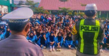 DINAMIKA SULTRA.COM, KOLAKA – Satuan Lalu Lintas (Sat Lantas) Kepolisian Resort (Polres) Kolaka bersama Jasa Raharja Kolaka memberikan edukasi terkait keselamatan berkendara kepada 852 pelajar di Sekolah Madrasah Aliyah Negeri (MAN) 1 Kolaka, Sulawesi Tenggara (Sultra).