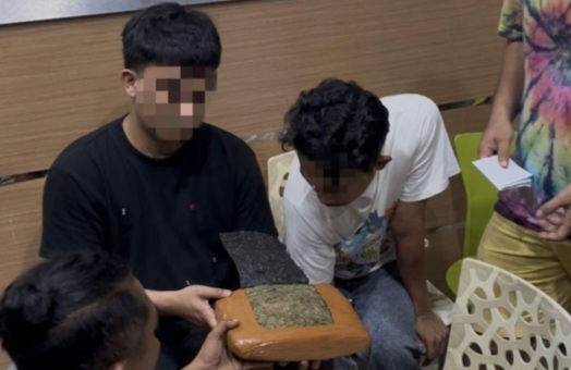 Saat dilakukan penggeledahan terhadap keduanya, petugas kepolisian menemukan satu paket berwarna cokelat diduga berisikan ganja dengan berat bruto 1.013 gram.