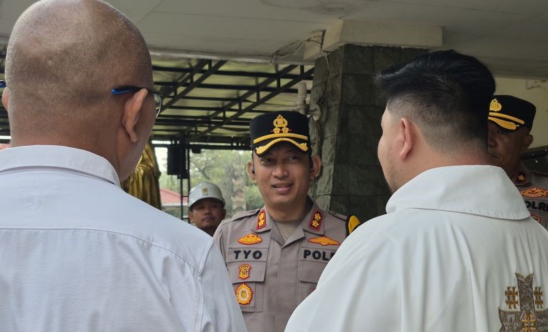Kapolres Sumedang AKBP Sandityo Mahardika melakukan monitoring dalam rangka pengamanan perayaan Natal 2025 dan Tahun Baru 2026 di Jatinangor, Sumedang, Jumat (26/12/2025). (ds/ANTARA/Ilham Nugraha)