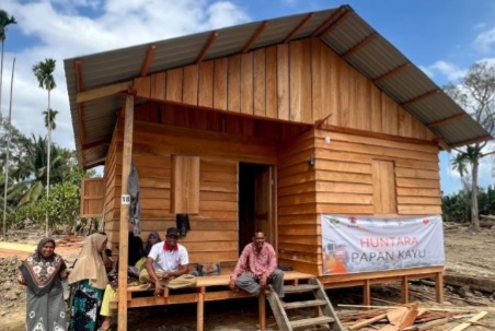 Adapun material kayu berasal dari tumpukan kayu banjir setempat, dipilah dan diverifikasi Kementerian Kehutanan, memastikan kualitas layak pakai agar hunian tidak cepat lapuk dan aman ditempati oleh warga terdampak setempat berkelanjutan.