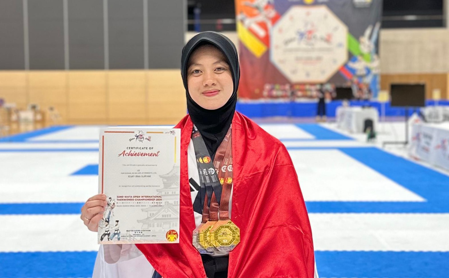 Dalam ajang bertajuk *22nd WATA Open International Championship* yang digelar pada 24-27 April 2026 tersebut, Bripda Risky berhasil memborong tiga medali sekaligus. Ia sukses meraih Juara I pada kategori *Individual Pomsai Putri*, Juara I pada kategori *Pomsae Pair*, serta Juara II pada kategori *Beregu Putri*.