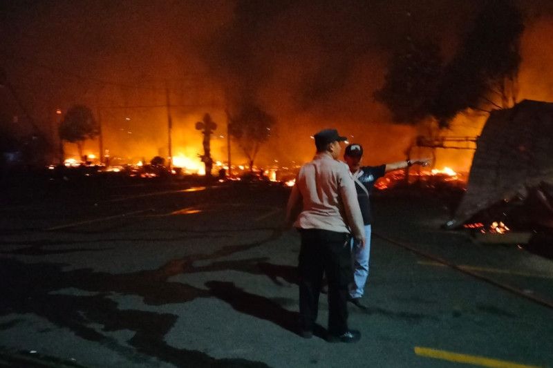 Kebakaran itu telah menghanguskan bangunan rumah makan yang sebagian besar bangunan dari bambu dan bahan bangunan lainnya yang mudah terbakar.