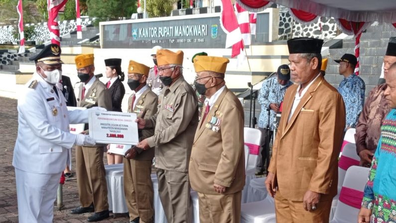 Kepala Badan Kesatuan Bangsa dan Politik Manokwari Jaka Mulyata, Rabu, menyatakan bantuan berupa uang tunai itu ditujukan kepada 105 anggota veteran, termasuk para janda yang tergabung dalam Legiun Veteran Republik Indonesia (LVRI) dan 17 anggota FKUB Manokwari.