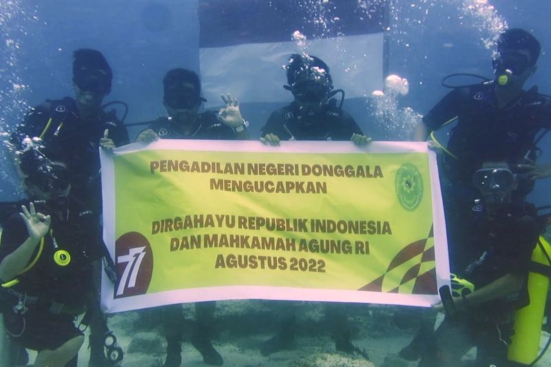 “Kami merangkaikan dengan HUT MA oleh karena itu bendera MA juga dikibarkan di dalam laut,” kata Ketua Pengadilan Negeri Donggala, Ni Kadek Susantiani usai pengibaran bendera bawah laut di Donggala, Kamis.