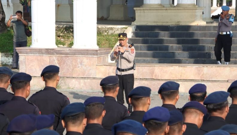 DINAMIKA SULTRA.COM, KENDARI – Kepolisian Resor Kota (Polresta) Kendari, Kepolisian Daerah (Polda) Sulawesi Tenggara (Sultra) menggelar apel pengecekan kesiapan pengamanan pelaksanaan Rapat Koordinasi Nasional (Rakornas) Kementerian Dalam Negeri atau Kemendagri Republik Indonesia (RI) di pelataran eks MTQ, Kota Kendari, Sultra.